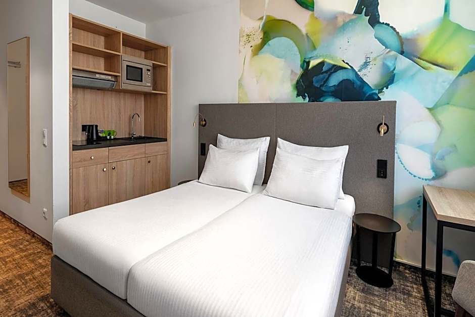 Offering free toiletries, this twin room includes a private bathroom with a shower and a hairdryer. The well-equipped kitchenette features a refrigerator, kitchenware and a microwave. The twin room has carpeted floors, a seating area with a flat-screen TV with satellite channels, soundproof walls, a tea and coffee maker, as well as a dining area. The unit has 2 beds.